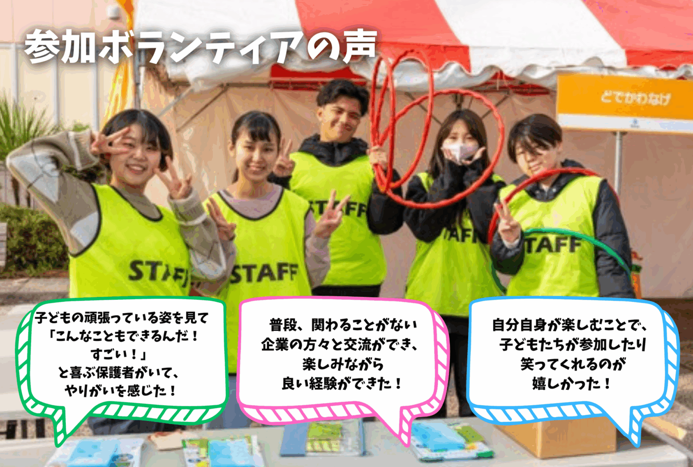 将来、小学校の先生や幼稚園、保育園の先生になりたいという方も参加いただいており、子どもとふれあう経験をしたい!という方も参加いただいています!